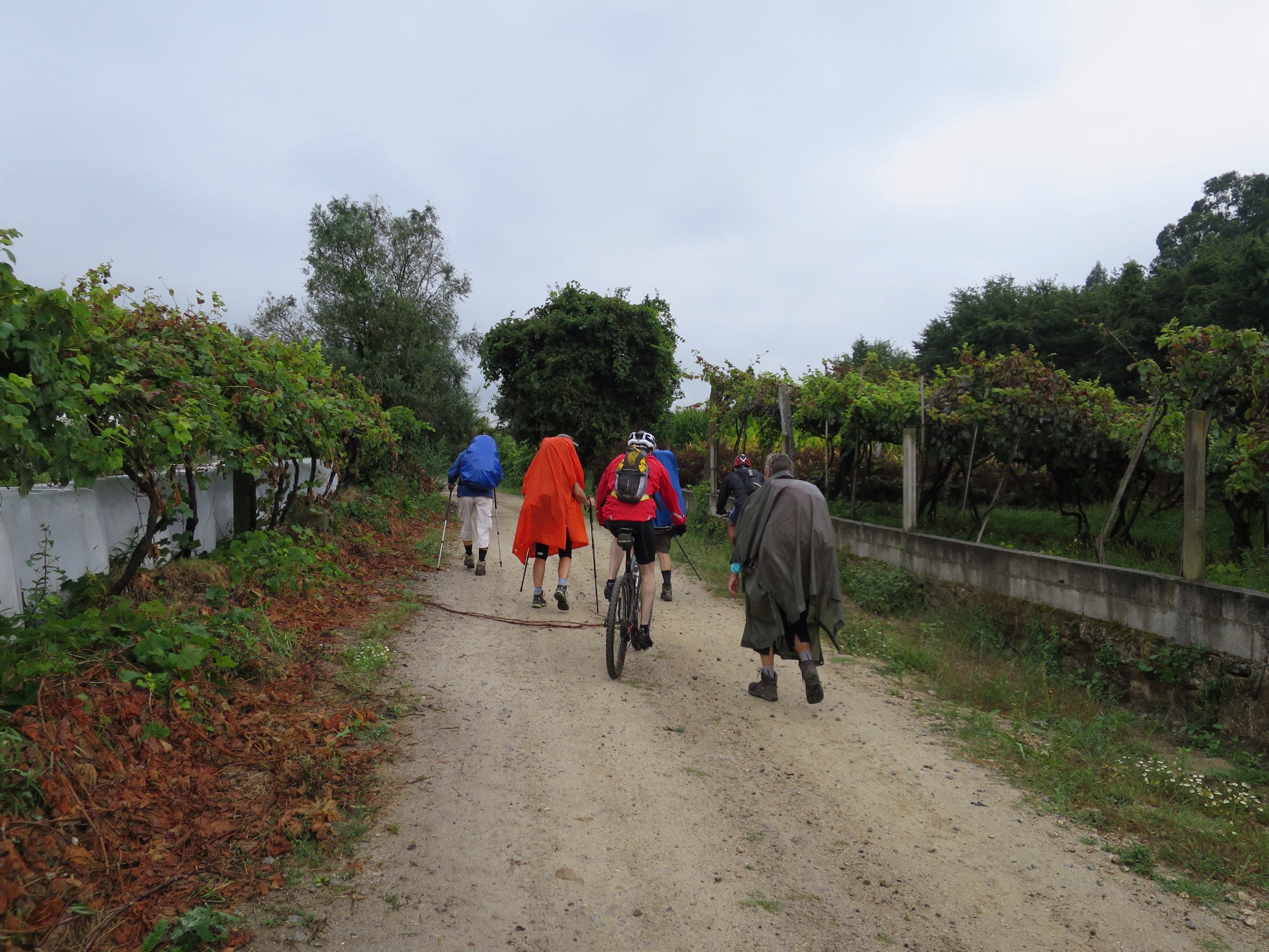 Een break in een cafeetje. Inmiddels zitten er 10 opdrogende pelgrims te wachten op hun eten. De kok is geloof ik van de kook, dit is iets teveel voor hem/haar.