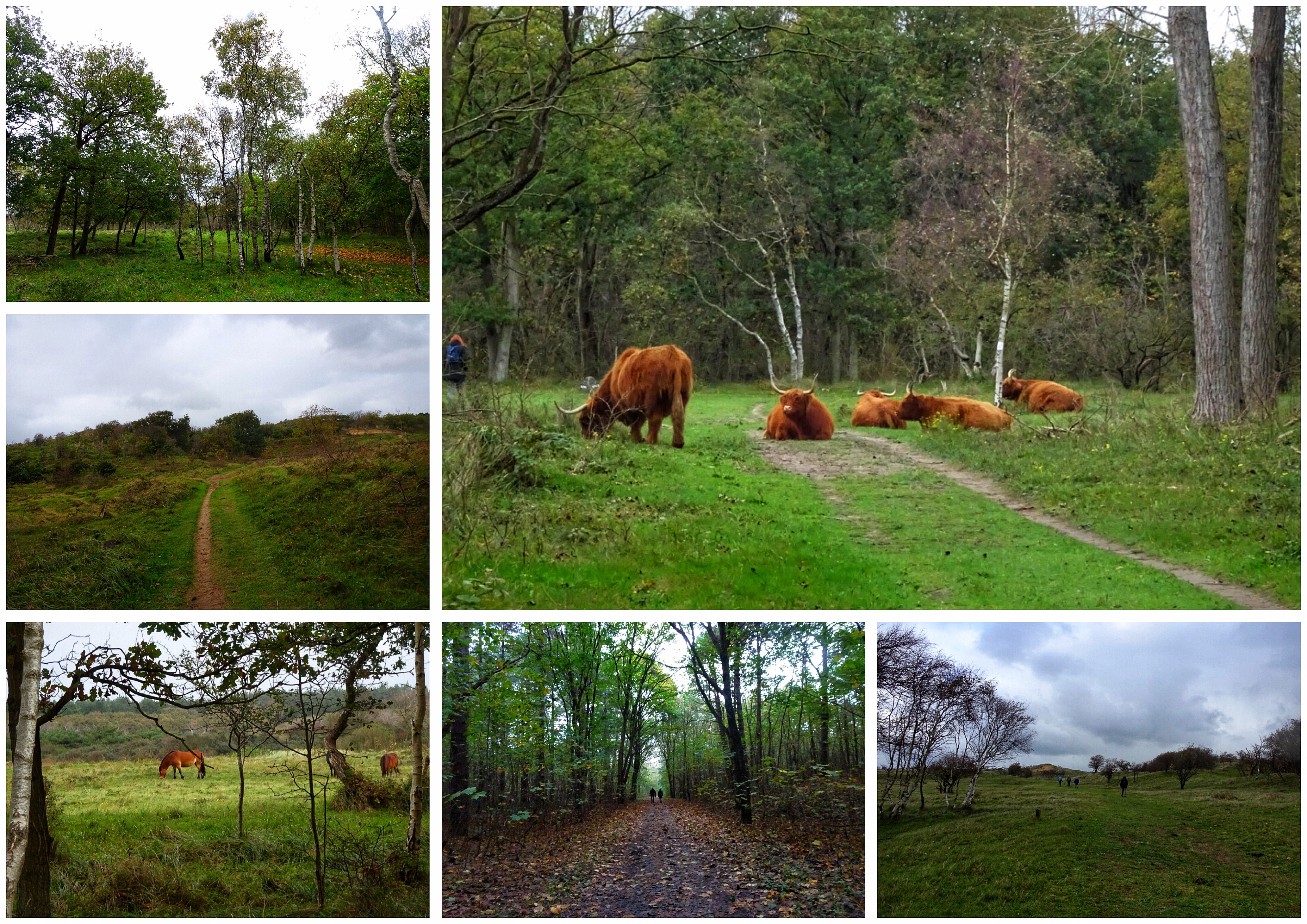 Nog steeds genieten van het Noordhollands Duinreservaat. Staat er plots op je pad een stel Schotse Hooglanders. En dan begint het ook nog eens echt te regenen. We schuilen maar even onder de bomen, duimen dat het een kort buitje is. De Hooglanders hebben nergens last van, ze blijven stoïcijns staan. Geen beweging in te krijgen. Wanneer het 10 minuten later weer droog is, lopen we in een bochtje om ze heen. Al gauw komen we op het laatste stuk van de route. We stappen stevig door, de lucht ziet er nog steeds donker uit, maar we houden het droog. Bij camping Geversduin lekker een warm soepje eten. Opladen voor de laatste kilometers, want ja dat station ligt toch echt 2 km verder weg.