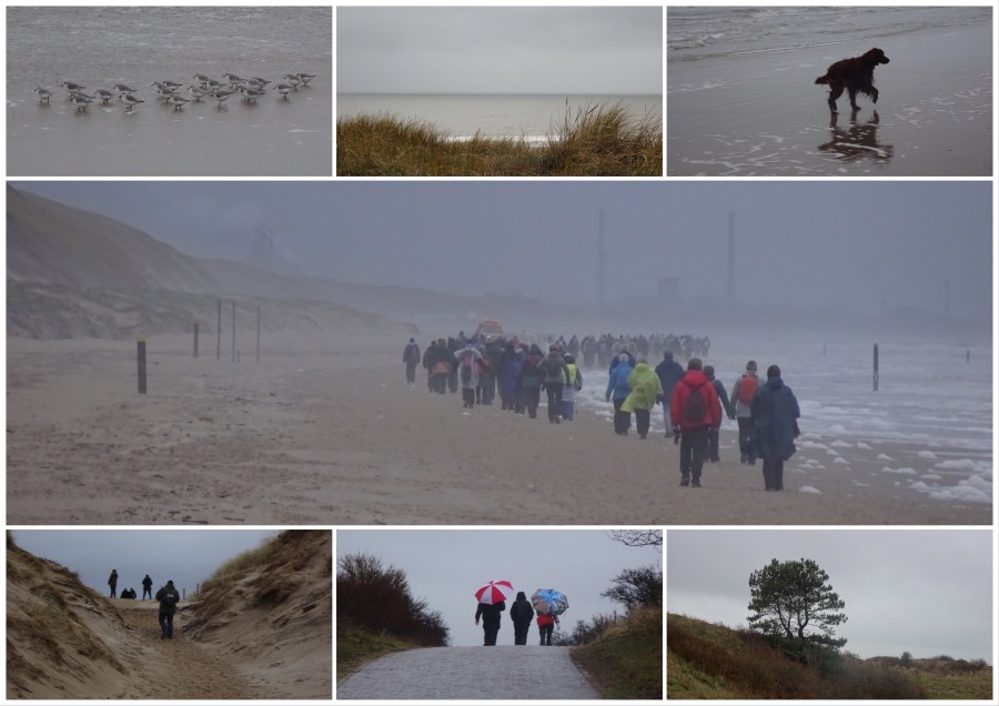 De weersvoorspellingen voor de wandelmarathon van Egmond waren niet al te best, maar het bleef zaterdag droog. Camera mee want ik wilde de strandlopertjes nu wel eens een keer goed op de foto krijgen. Ik kwam niet verder dan één foto. Een hond vond ze ook leuk, met als gevolg dat binnen een seconde de vogels gevlogen waren. Daar ging mijn droomfoto. Geen strandlopertje meer gezien. De focus maar op het wandelen gelegd, daar kwam ik tenslotte voor. Veel klimmen en dalen door rul zand. Goede oefening voor de beenspieren.