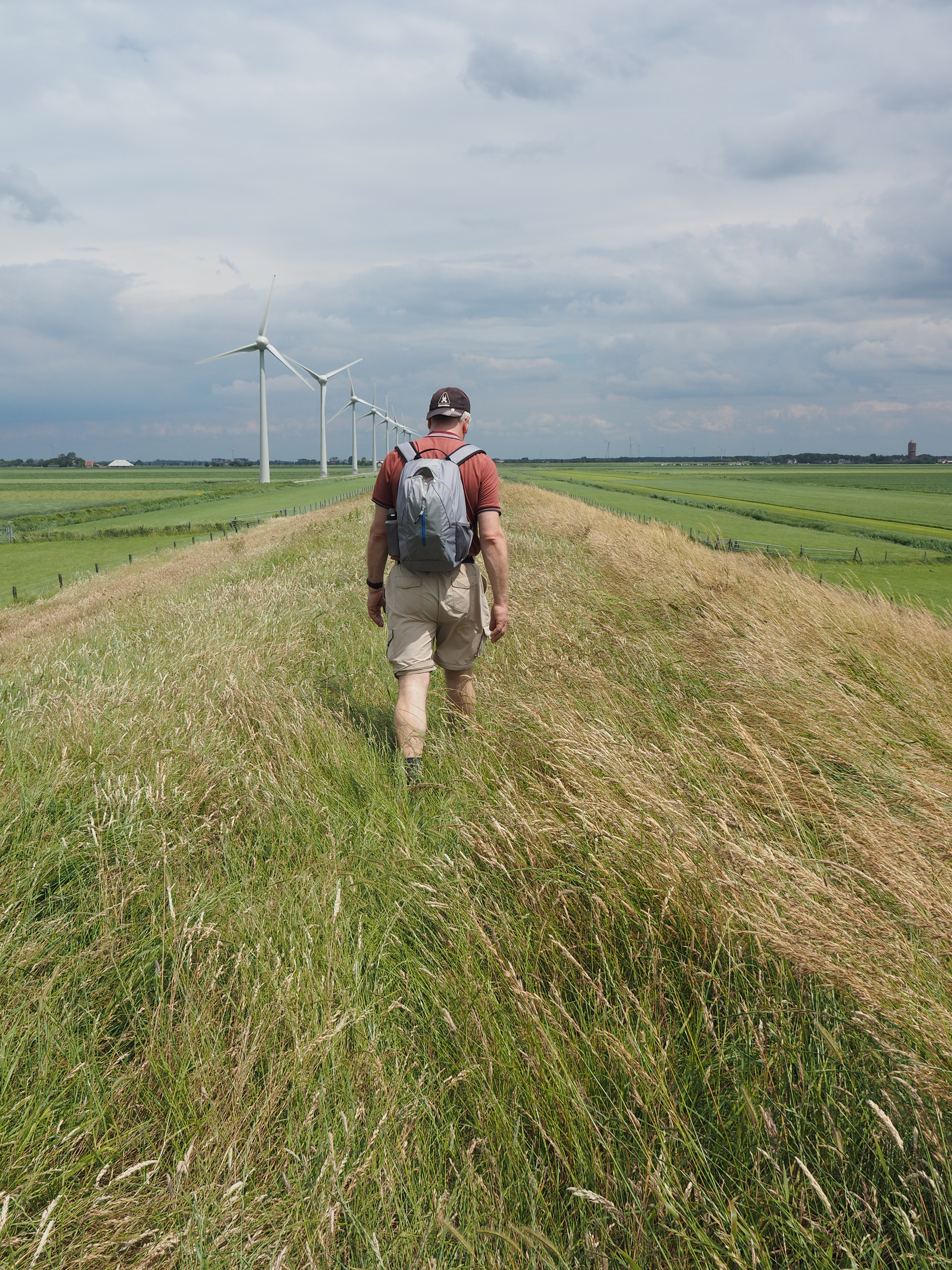 Vandaag start de route vanuit Oudesluis. Het is even zoeken naar het beginpunt. We starten direct al met een stuk(je) Noord-Holland pad. De groene dijk op. En dan sta je voor een hek met hoog gras er achter. Over het hek klimmen en dan rechtdoor? Er dwars doorheen? Eh, ja dus. Door het hoge gras naar het volgende hek. Kriebelt lekker als je een korte broek aan hebt (niet dus). Gelukkig, bij het volgende hek is het gras kort. Loopt iets makkelijker. We vervolgen onze weg verder op de Noordwesterdijk. Onder aan de dijk worden we nauwlettend in de gaten gehouden door de schapen.