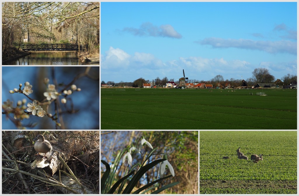 Het wandelen wil vandaag niet zo, ondanks het zonnetje. Het wordt dus een niet al te lang rondje. Onderweg genieten van de hazen die te voorschijn komen, de sneeuwklokjes, de bloesem die begint te groeien en het gekwetter van de vogels. Zo te zien en te horen is de lente in aantocht.